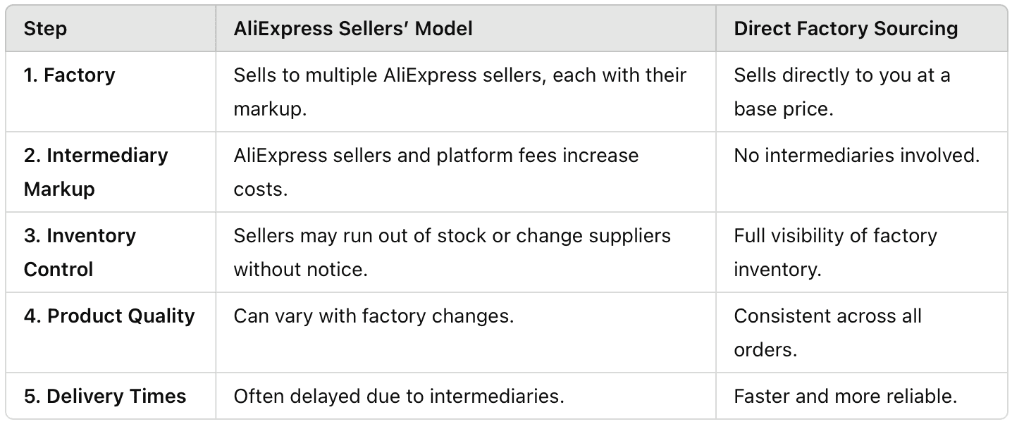 Direct factory sourcing addresses the core inefficiencies of traditional dropshipping. While some eCommerce strategies emphasize automation or product research, these tools cannot compensate for the fundamental issues caused by reliance on intermediaries.